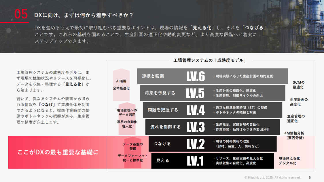 • DXの基礎はデータの“見える化”と“つなげる”ことであり、シームレスな管理により高度な活用が可能になる